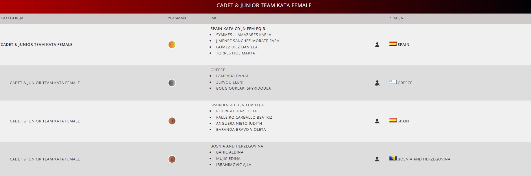 Kata tim kadetkinje/juniorke Karate reprezentacije BiH osvojio je bronzanu medalju na 31. Mediteranskom prvenstvu za kadete, juniore i seniore u Španiji.