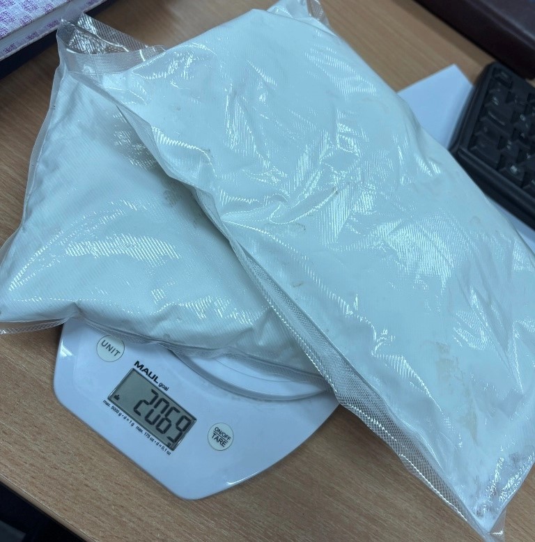 Tom prilikom su pronađeni i privremeno oduzeti slijedeći predmeti: 2 veća pvc pakovanja pravougaonog oblika sa sadržajem bijele materije koja asocira na opojnu drogu “Speed” za koju je preliminarnim vaganjem utvrđeno da se radi o materiji ukupne mase preko 2kg, 1 pvc kesa sa sadržajem zeljaste materije koja asocira na opojnu drogu “Cannabis Sativa” za koju je preliminalrnim vaganjem utvrđeno da se radi o materiji ukupne mase preko 100 grama, kao i drugi predmeti koji se dovode u vezu sa počinjenjem krivičnih djela.