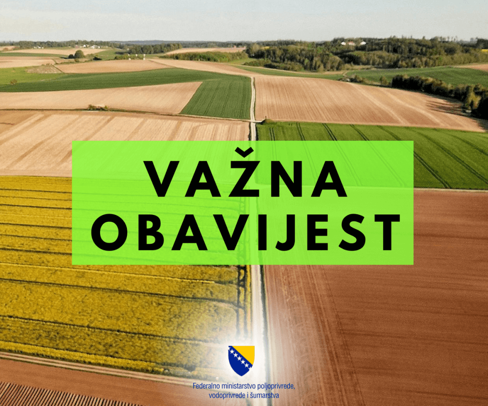Važna obavijest poljoprivrednim proizvođačima: Sistemska kontrola plodnosti obradivog poljoprivrednog zemljišta od 1. do 4. katastarske klase.